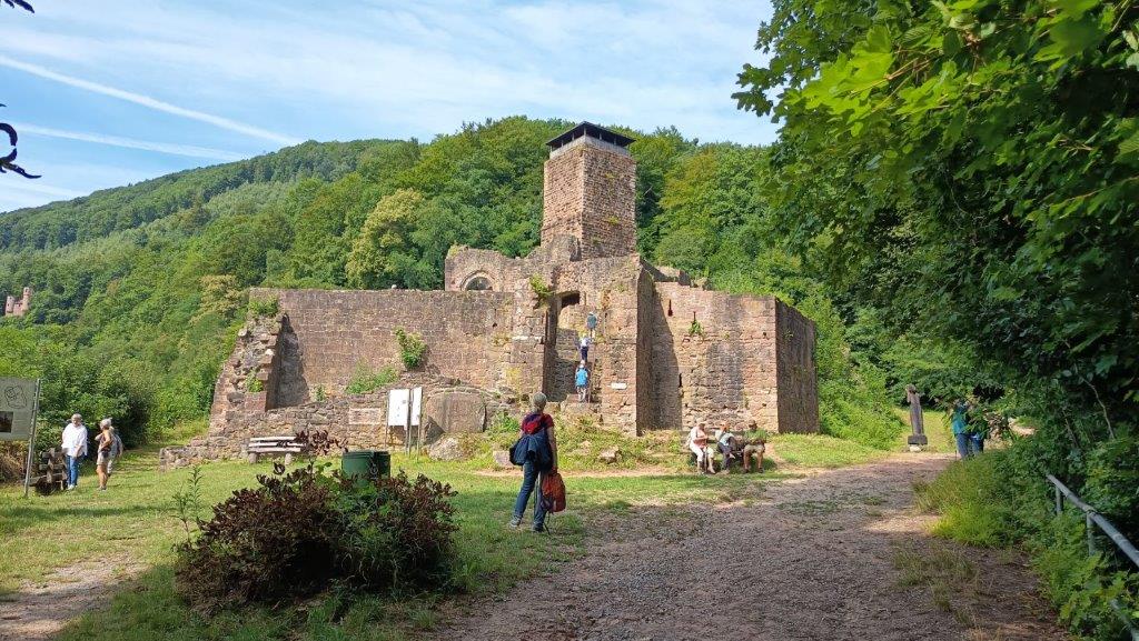 Die Wanderung startete bei bestem Herbst-Wanderwetter für beide Gruppen in Eppenbrunn am Stüdenbach-Weiher. Von da aus ging es den Hilsterbach entlang, am Spießweiher vorbei Richtung Altschlossfelsen. Wir folgten dem Altschlosspfad und besichtigten die 1,5 km langen und 30 m hohen bizarren Buntsandsteinfelsformationen der Altschlossfelsen. Danach ging es weiter zur französischen Grenze, und wir folgten ein Stück dem Grenzweg, wo wir oft ein "Bonjour" hörten. Am Martelbach und später am Eppenbrunner Bach und dem Helmut-Kohl Wanderweg entlang ging es dann zurück nach Eppenbrunn zum Hotel-Restaurant Kupper, wo die Kurzwanderstrecke nach ca. 7,5 km und ca. 90 hm endete.