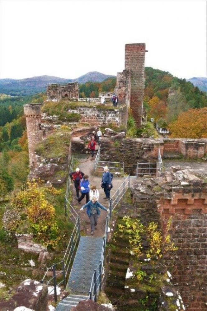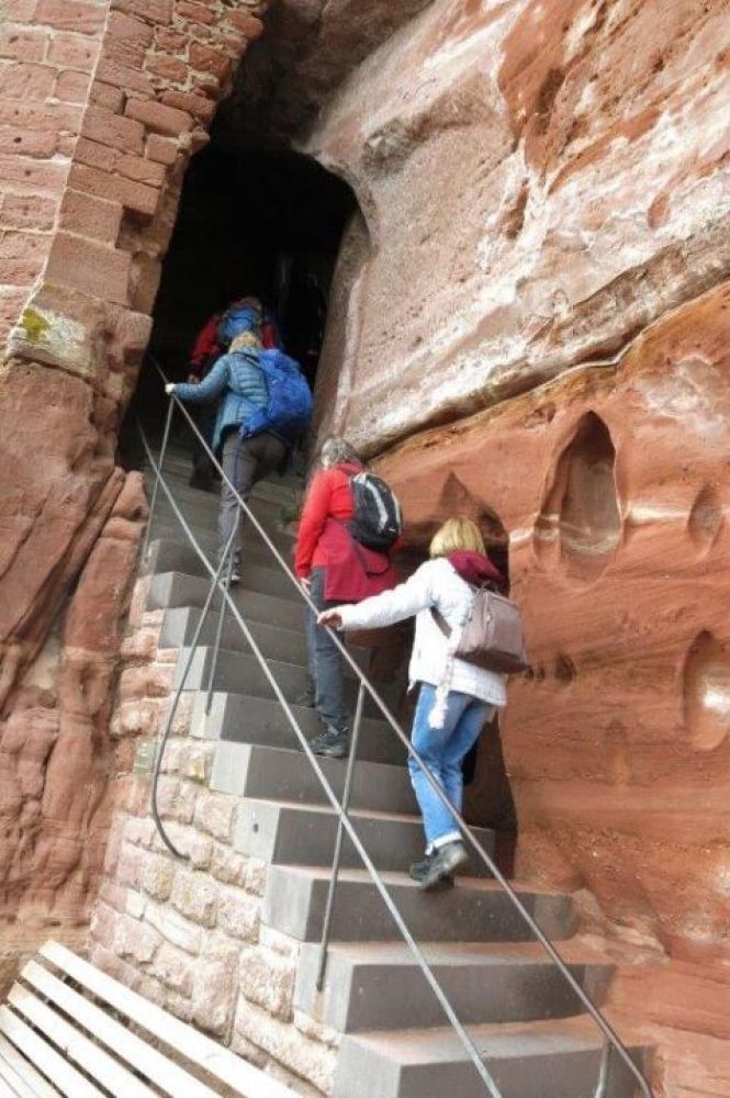 Nach dem Mittagessen ging es durch die Altstadt von La Petite-Pierre, von den Einwohnern liebevoll „Staedel“ genannt. Der Ort ist reich an Kultur und Geschichte. Die Wurzeln reichen bis ins Mittelalter zurück. Durch das „Staedel“ erreichten wir schnell die Burg Lützelstein, auch bekannt als Château de la Petite-Pierre. Mit ihrer außergewöhnlichen Lage auf einem steilen Felsvorsprung ist die Burg ein kulturelles und historisches Wahrzeichen der Region.