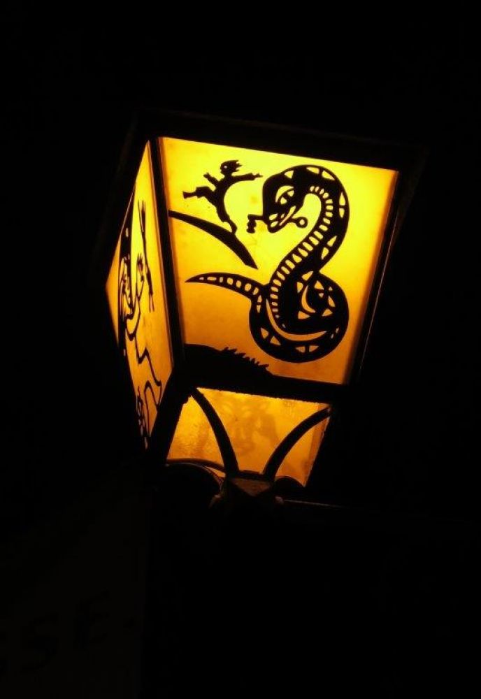 Wir begaben uns auf Heppenheims Laternenweg und wandelten so auf den Spuren alter hessischer Sagen. Die 2004 aufgestellten Straßenlaternen wurden mit kunstvollen Scherenschnitten verziert und leuchteten seitdem auf die Gassen der Heppenheimer Altstadt herab. Die Bilder erzählen Geschichten aus längst vergangener Zeit, von Riesinnen, Wichteln und von unerlösten Rittern. Geschichten von Mut und List, von Heldentum und Liebe.