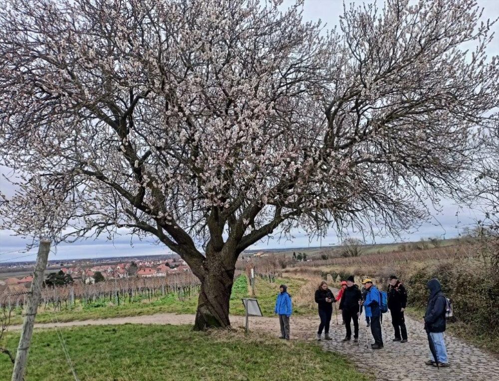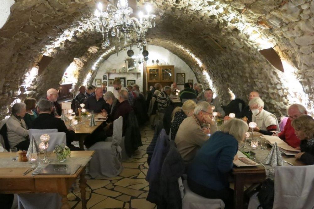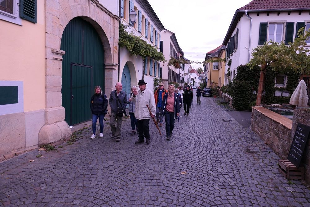 Wir hörten Interessantes über den Herrenhof in Mußbach, der in seiner Geschichte mehrfach die Besitzer wechselte. Dazu gehörten die Salier, die Staufer und der Johanniterorden, in dessen Besitz er 500 Jahre verblieb. Der 30-jährige Krieg und der pfälzische Erbfolgekrieg zerstörten das Anwesen weitgehend. Zuletzt im Besitz des Malteserordens, ließ Kaiser Napoleon 1811 den Herrenhof an einen wohlhabenden Mainzer Kaufmann versteigern. Im Besitz dieser Familie verblieb das Anwesen bis 1970. Danach übernahm das Land den Herrenhof. Im Anschluss an die Führung wurden wir von der Winzerfamilie Klohr in Mußbach bestens bewirtet. In der gemütlichen Winzerstube wurde der Wanderplan 2025 vorgestellt.