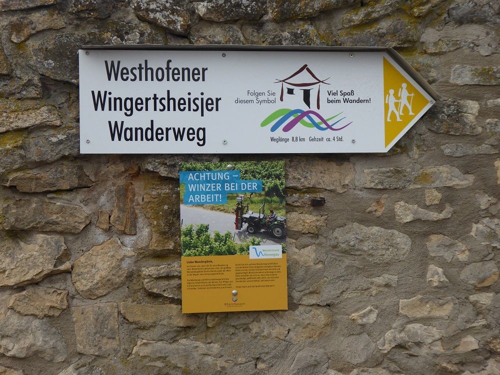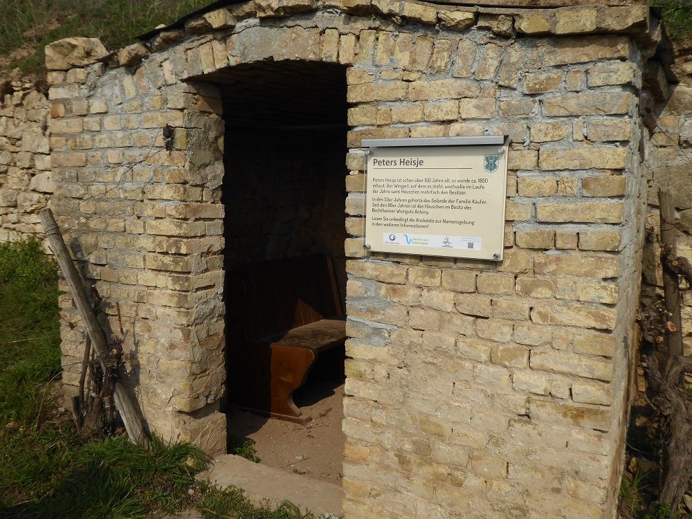 Bei den Wingertsheisjer handelt es sich um Weinbergsschutzhütten, die für die Weinbergsschützen oder für die Winzer erstellt wurden. In Westhofen gibt es noch 54 dieser Heisje, 9 davon haben wir erkundet. Unsere Wanderung begann am Parkplatz Nickelgarten in Westhofen. Der Weg führte direkt in die Weinberge, wo bereits nach wenigen hundert Metern das erste Heisje erkundet wurde. Wir wanderten durch einen der typischen Hohlwege im Wonnegau und erleben unterwegs eine herrliche Weitsicht, die sich auf jeder Ebene anders darstellte.