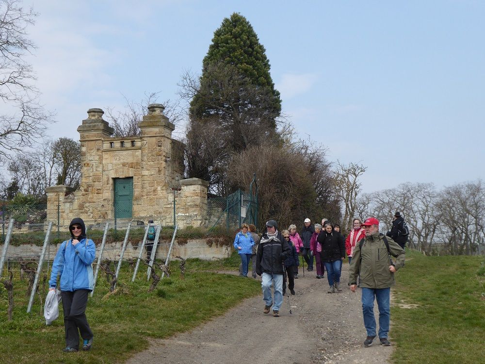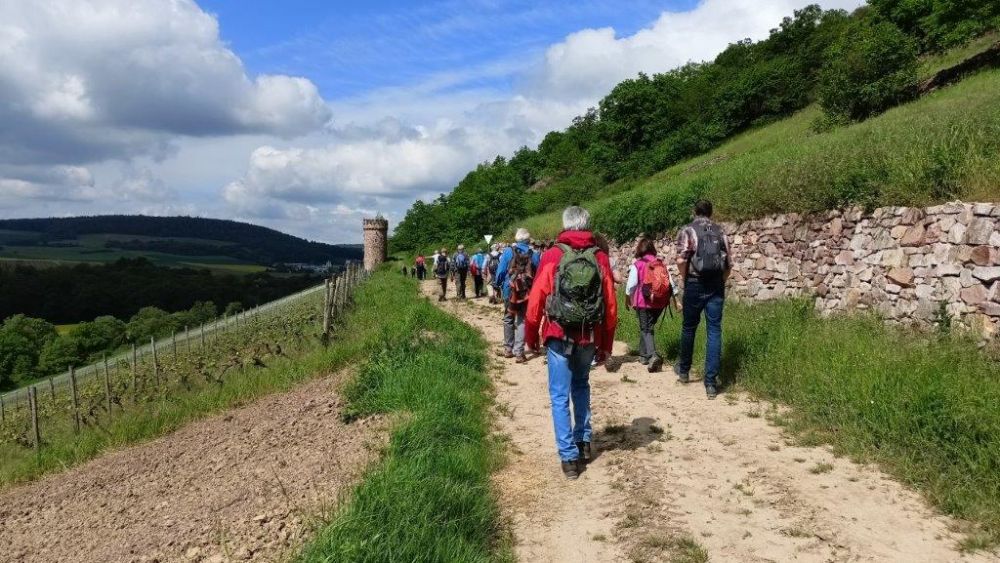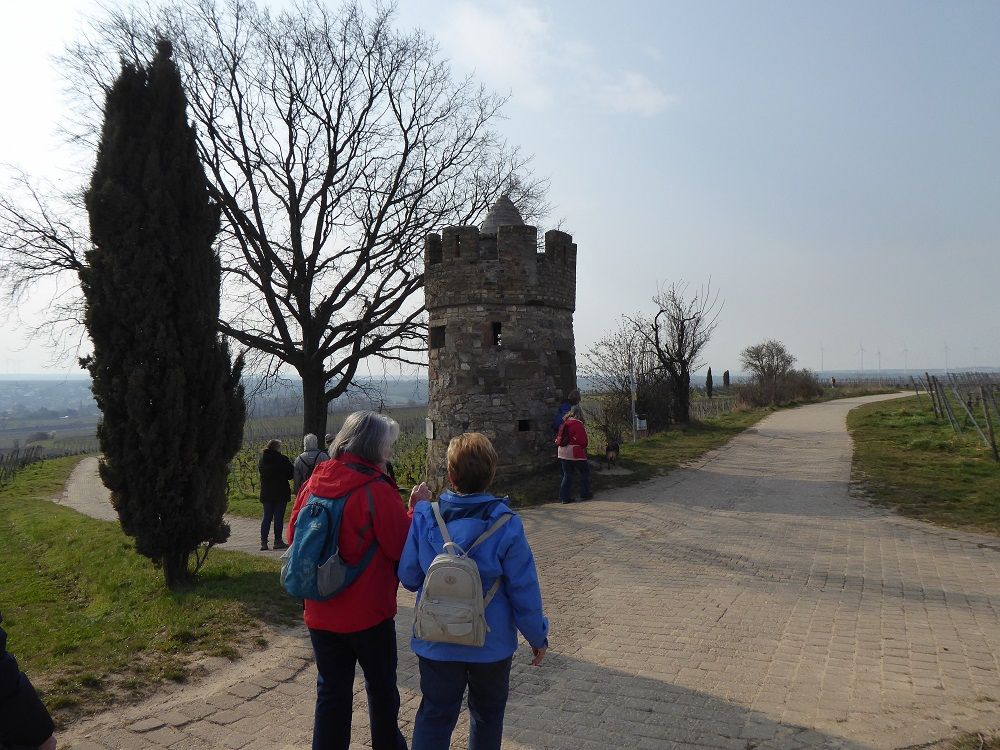 Wir starteten unsere Wanderung ab Bahnhof Flörsheim-Dalsheim und gelangten direkt in die Weinberge. Es ging vorbei an einem schönen Trullo (Weinbergshäuschen), weiter am Wingertsheisje am Goldbergbrunnen vorbei nach Mölsheim. Unterwegs genossen wir das schöne Panorama über die Weinberge, in die Rheinebene bis zum Odenwald und auf der anderen Seite bis zum Donnersberg. An der Weinrast mit Weitblick in Mölsheim machten wir eine Pause. Die Kurzwanderer konnten von hier aus direkt zum Schlossgut Lüll in Wachenheim gelangen. Die Langwanderer machten noch einen kleinen Abstecher von Rheinhessen in die Pfalz zu den Niefernheimer Löchern und erreichten danach das mittelalterliche, märchenhafte Schlossgut Lüll in Wachenheim/Rheinhessen. Inmitten der erhaltenen Schlossanlage steht der um 1500 errichtete, sechs Stockwerke und 25 Meter hohe Wohnturm. Der mächtige Burgfried gilt als der größte Wohnturm Rheinhessens. Zusammen mit der Schlossherrin begaben wir uns auf Entdeckungstour über das Areal mit Schloss, Wirtschaftsgebäuden und der wunderschönen historischen Parkanlage. Gestärkt durch einen kleinem Imbiss in der Kuhkapelle des Schlosses ging es für die Langwanderer weiter entlang der Pfrimm noch ca. 4 km nach Monsheim. Die Kurzwanderer konnten sich noch im Schlossgut Lüll aufhalten.