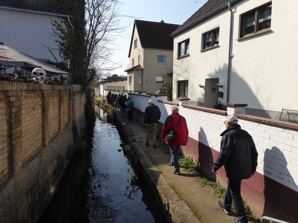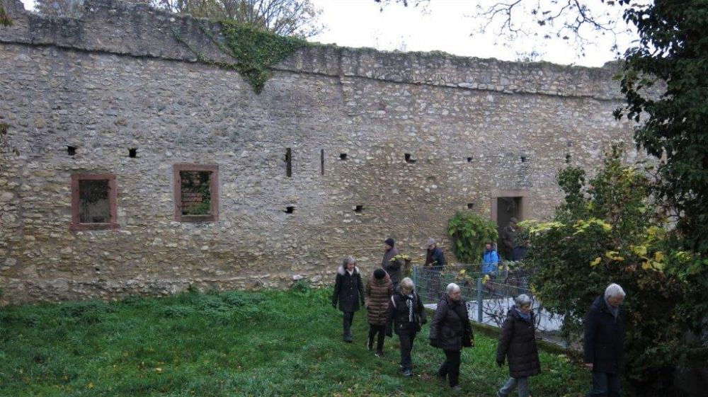 Weitere historische Monumente auf unserem Weg waren die Seysselkaserne, das Zeughaus, die Carnot'sche Mauer, das Arrestgebäude, das Garnisonslazarett und die Kommandantur. Und an der Queich entlang lernten wir die vielfältigen Nutzungsvarianten des Wasserlaufs im Lauf der Zeit kennen, etwa als Waschplatz, als Mühlenantrieb zur Stromerzeugung, als Wasserquelle der Feuerwehr sowie für die Befüllung des Burggrabens.