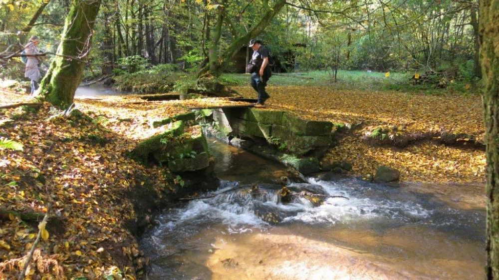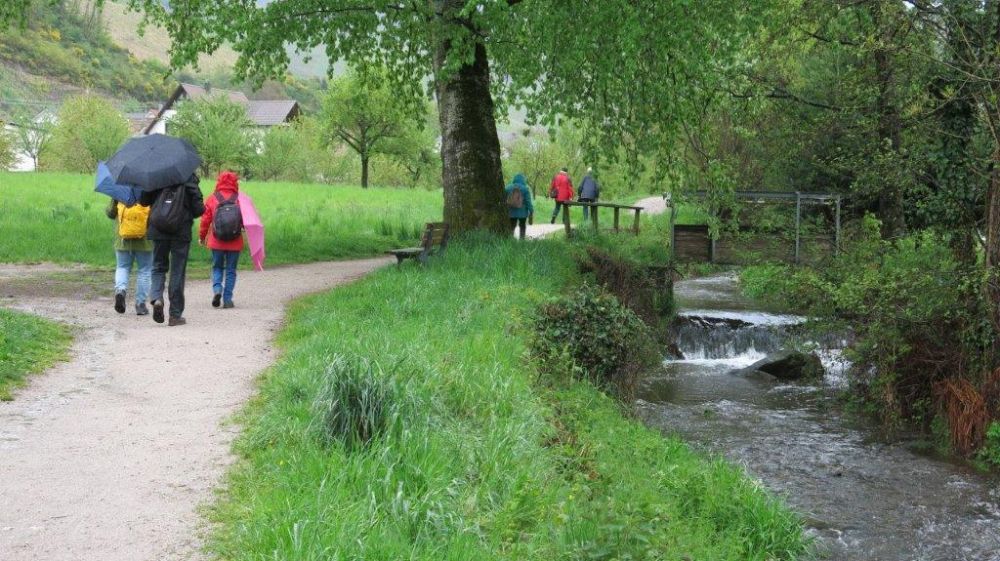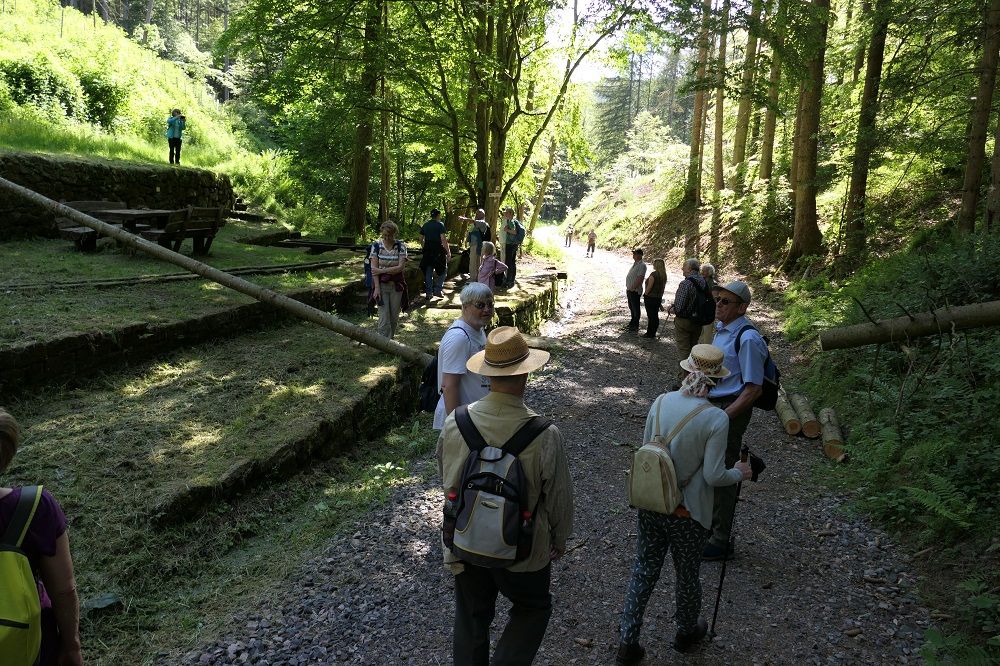 Gemeinsam starteten wir unsere Wanderung ab Hinterweidenthal am Heufels vorbei durch das Wieslautertal ins Windelstal und durch die Waldwiese "Auf der Heide" weiter nach Salzwoog. Von Salzwoog aus ging es am Bach entlang durch das Salzbachtal zurück nach Hinterweidenthal. Durch das Salzbachtal wurde früher Salz transportiert und Holz geflößt. Am Bach konnten wir noch Überreste der alten Holztriftanlagen erkennen.