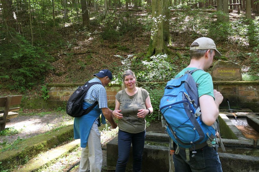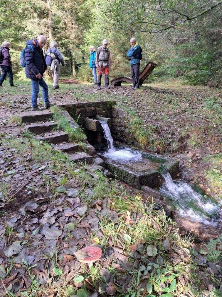 Für die Langstreckengruppe ging es weiter zum Großen Humberg (424 m). Vom Humbergturm aus hatten wir einen tollen Blick über Kaiserslautern. Auf unserem weiteren Weg Richtung Bremerhof kamen wir an der Naturbrunnenquelle Pfaffenbrunnen vorbei.