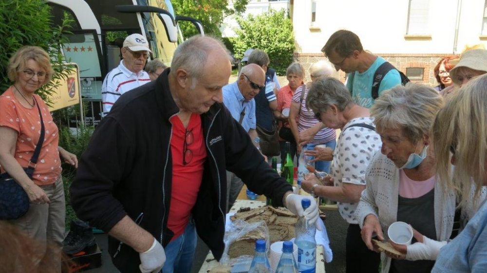 Fam. Ullrich bot uns zum Essen ein deftiges Spießbratenessen mit Zwiebelgemüse an oder für Vegetarier Spinatknödel und wer wollte, konnte an einer kleinen Weinprobe teilnehmen.