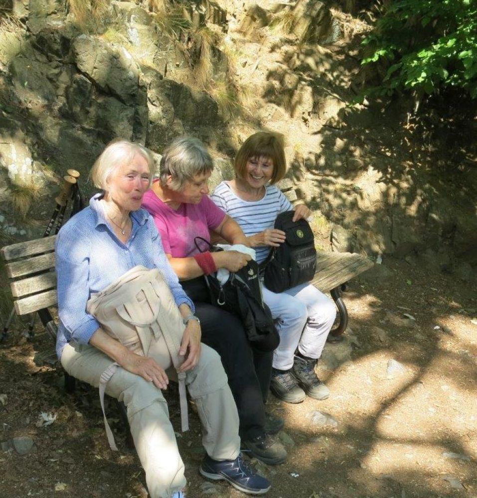 Vom Belmont-Platz in Erfweiler starteten wir unsere Wanderung, vorbei an Hebelfels, Zimmerfels und Löchelfels, zu den drei Dahner Burgen, die nebeneinander auf fünf großen Felsen des Schlossbergs erbaut wurden. Im Anschluss an die Besichtigung der Burgareale führte uns unser Weg ins Tal des Breitenbachs. Nach einem Abstecher zum Schafstein gelangten wir zurück zum Belmont-Platz in Erfweiler, von wo uns der Bus zum Ferienbahnhof Reichenbach in das „Alten Bahnhöf‘l“ brachte und wir den Tag gemütlich ausklingen ließen.