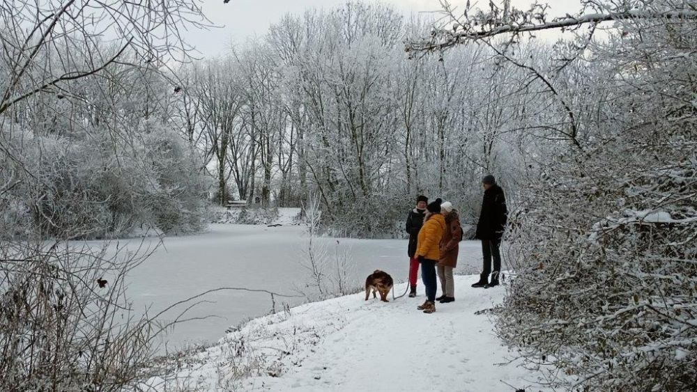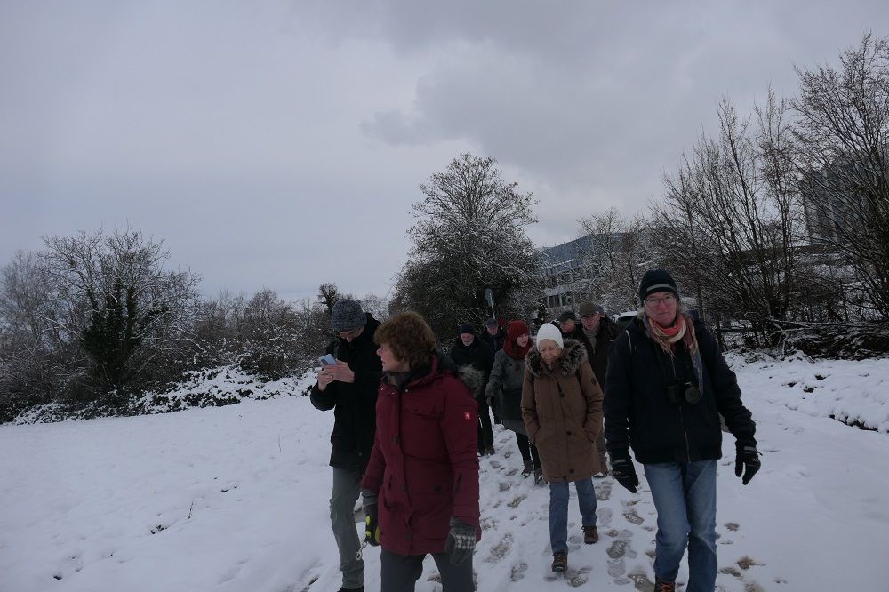 Wir trafen uns um 10:30 Uhr am Friedhof in Schauernheim, von dort wanderten wir durch die winterliche Schneelandschaft zuerst zum Rohrlachweiher westlich von Fußgönheim, dann weiter auf der Ostseite hinter dem Hallbergschen Schloss in Fußgönheim zu unserer Einkehr im Genusshof Ehrlich (Eicher, Rustenweg 5, Fußgönheim).
