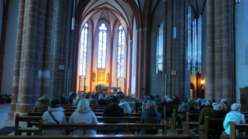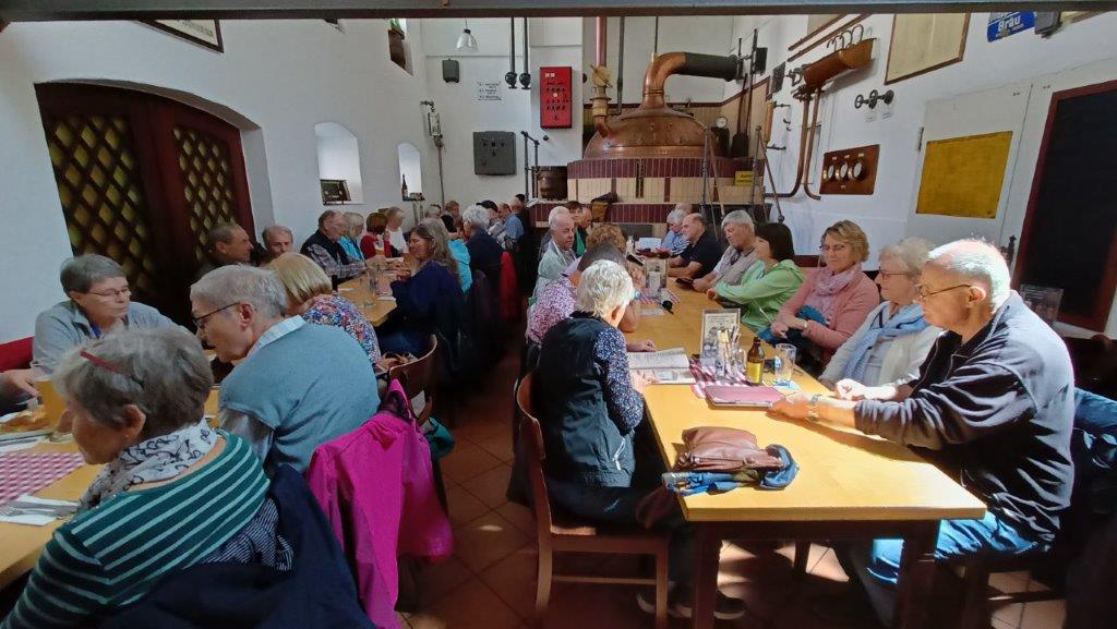 Unser nächstes Ziel war nach wenigen Gehminuten die Kirche St. Stephan mit den berühmten Chagall-Fenstern. Von dort ging es über etliche Treppen hinab zu unserer Einkehr im „Eisgrub-Bräu“, einer Brauerei aus dem 19. Jahrhundert, in der Hausmannskost und vor Ort gebrautes Bier angeboten wurde. Wir hatten danach noch Zeit für einen Spaziergang durch die Altstadt, konnten uns noch den Mainzer Dom anschauen und begaben uns danach wieder zum Bahnhof zu unserer Rückfahrt in die Pfalz.