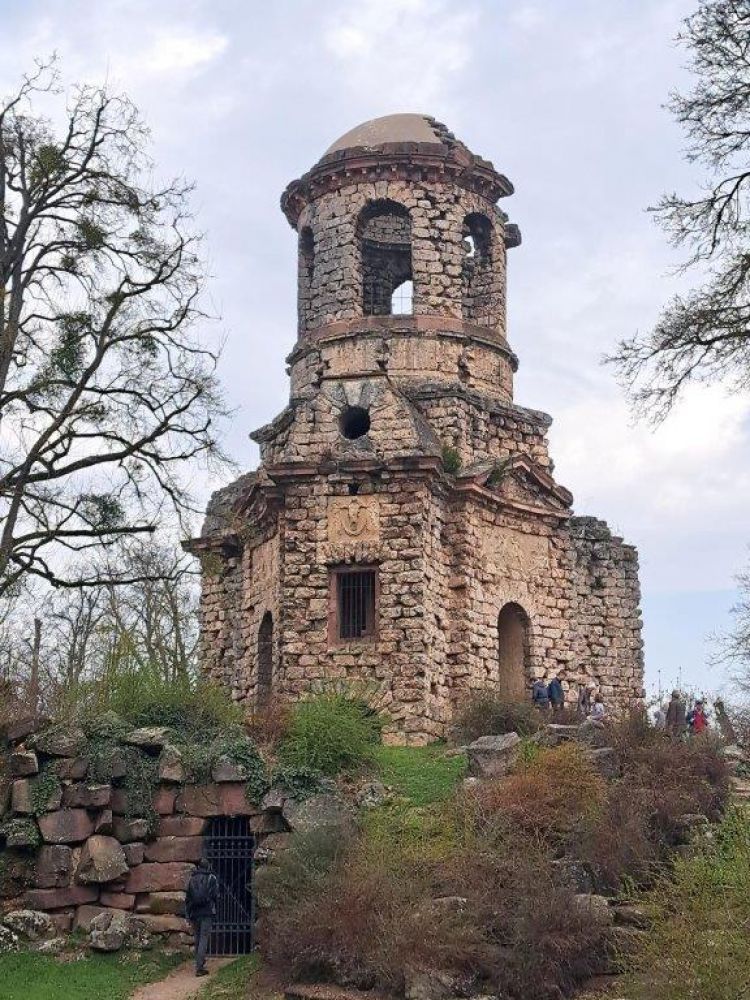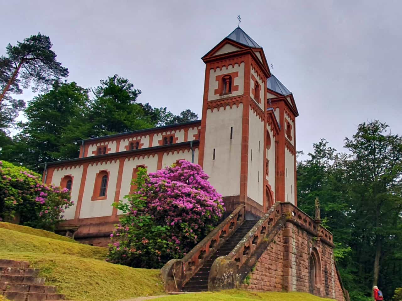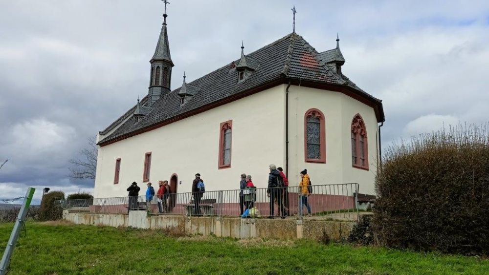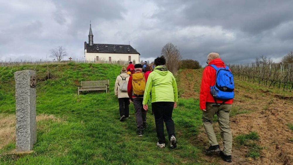 Die Langwanderer starteten am imposanten Schloss von Herrnsheim. Dessen im englischen Stil gestalteter Schlosspark setzt einen spannenden Kontrapunkt zu den fast endlos erscheinenden Rebflächen, die den Weg rund um den Abenheimer Skulpturenweg bis Osthofen mit seiner Bergkirche und den historischen Weinbergshäuschen prägen. Wir folgten immer dem Zeichen „Rheinterrassenweg“, der hier größtenteils deckungsgleich mit dem Lutherweg verläuft (ca. 12 km – überwiegend eben – nur ein kleiner, moderater Anstieg kurz vor der Klausenbergkapelle).