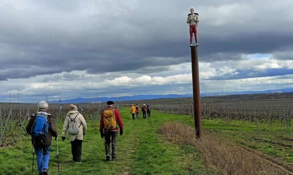 Die Kurzwanderer fuhren weiter nach Abenheim und wanderten dort in gemütlichem Tempo den Skulpturenweg entlang (knapp 4 km). Mit dem Bus ging es für die Kurzwanderer danach weiter nach Osthofen.