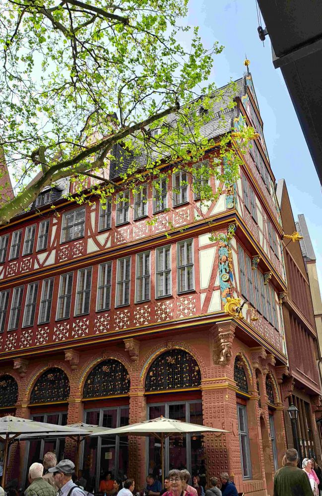 Bei einem 2-stündigen Rundgang mit zwei fachkundigen Führern durch Frankfurts Traditions- und Handelsstadt erfuhren wir bei bestem Wetter Wissenswertes über die Geschichte der Stadt. Auf dem Römerberg fanden Krönungsfeierlichkeiten der Könige und Kaiser des hl. Römischen Reiches statt. Die Paulskirche, den Ort der 1. dt. Nationalversammlung 1848, konnten wir besuchen, das Goethehaus sahen wir von außen. Weiter ging es, unterhalten durch etliche Anekdoten, die unsere Reiseführer zu erzählen wussten, in die neue Altstadt. Am Dom vorbei gelangten wir schon zum Main und beendeten unsere Tour auf der anderen Main-Seite im traditionsreichen „Daheim im Lorsbacher Thal“ in Alt-Sachsenhausen. Das Lokal gärt im Keller noch eigenen Äppelwoi .Aber außer den Eigenkreationen dürfte das Lokal die größte Äppelwoi-Karte der Stadt haben. Ob die Pfälzer von den Vorzügen des Frankfurter „Nationalgetränks“ überzeugt werden konnten, vielleicht mit Sorten, wie beispielsweise "Roter Adam" oder "Cox Orange", etc.?