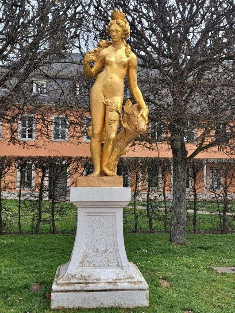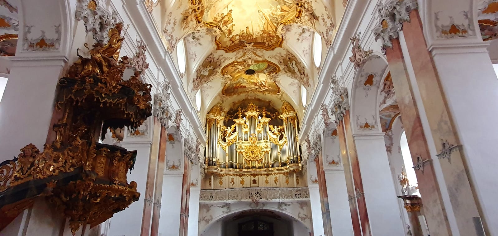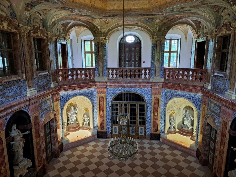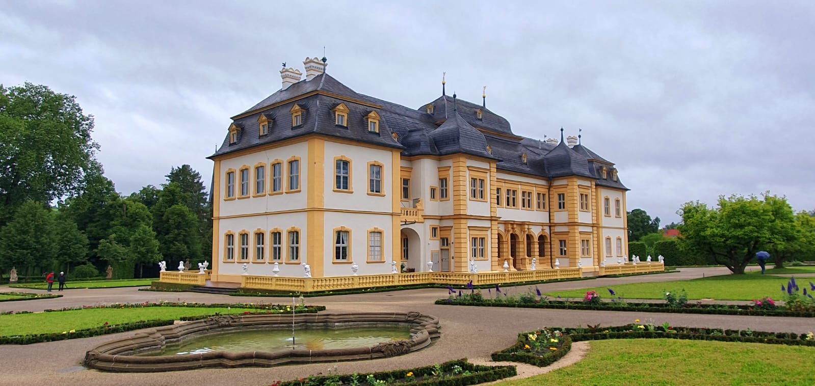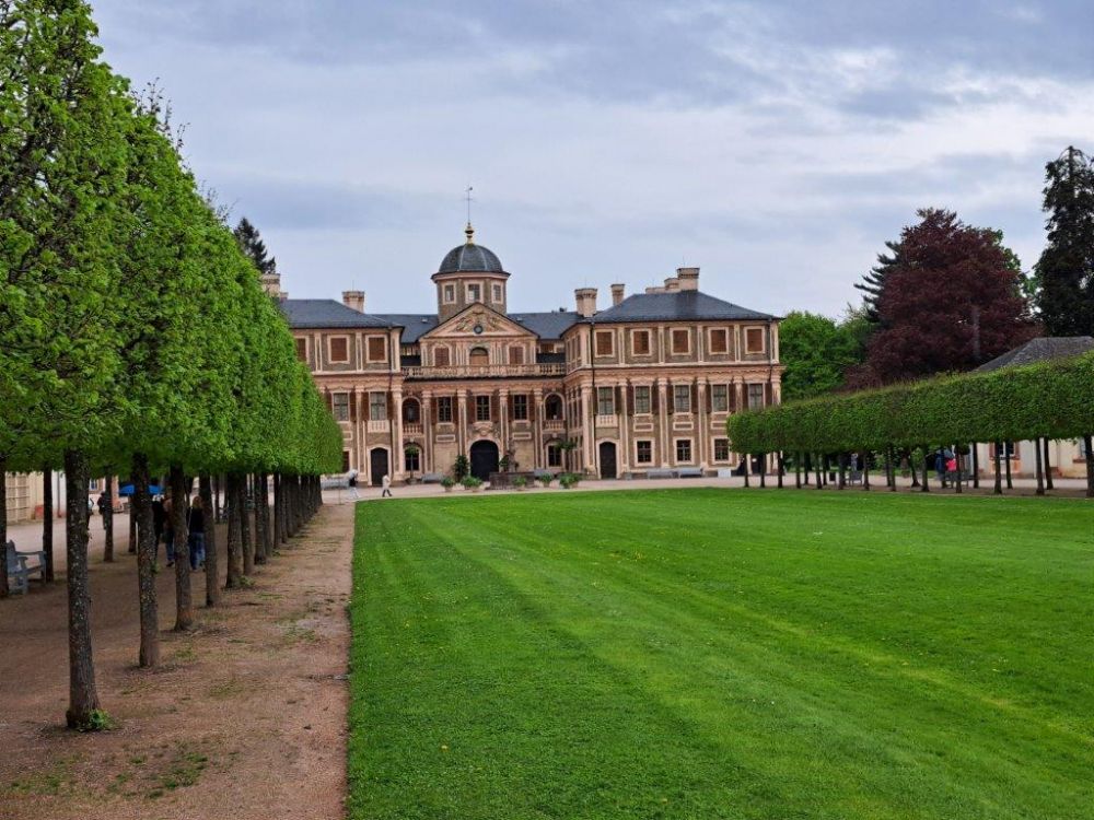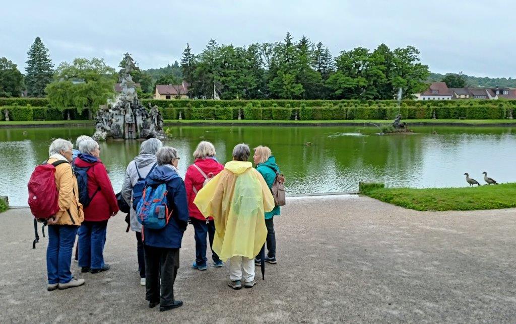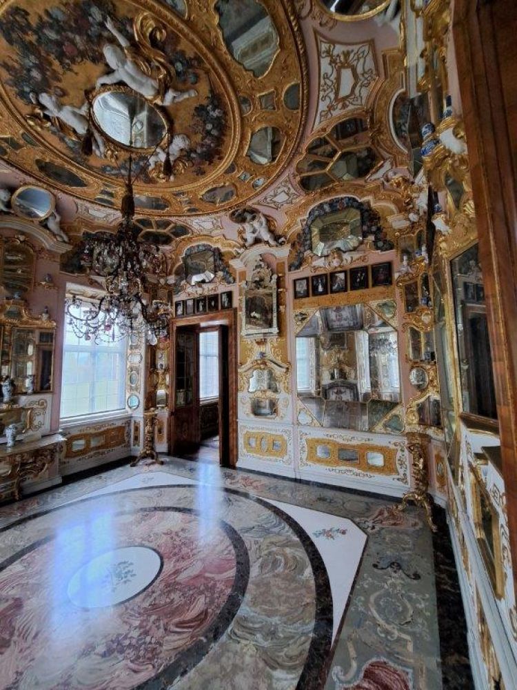 Nach dem Essen fuhren wir weiter mit dem Bus zum Schloss Favorite bei Rastatt. Ein Teil der Gruppe konnte spontan an einer Führung durch das Schloss teilnehmen. Das Schatzkästlein der Markgräfin Sibylla Augusta erschloss sich bei der fachkundigen Führung durch die detailreichen Räume mit ihren kostbaren Sammlungen am besten. Andere zogen einen kleinen Parkrundgang oder Besuch im Schloss-Café vor.