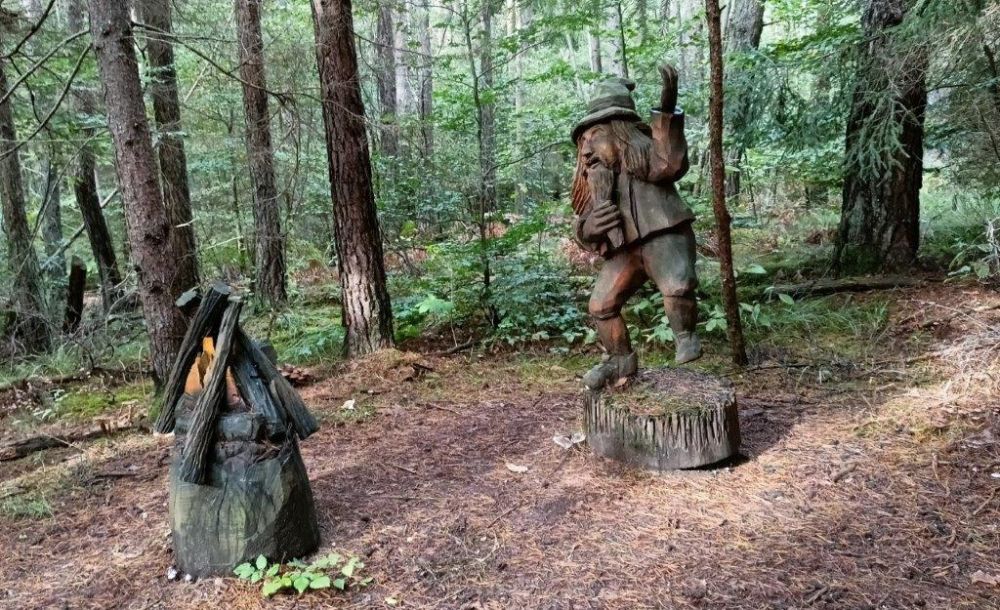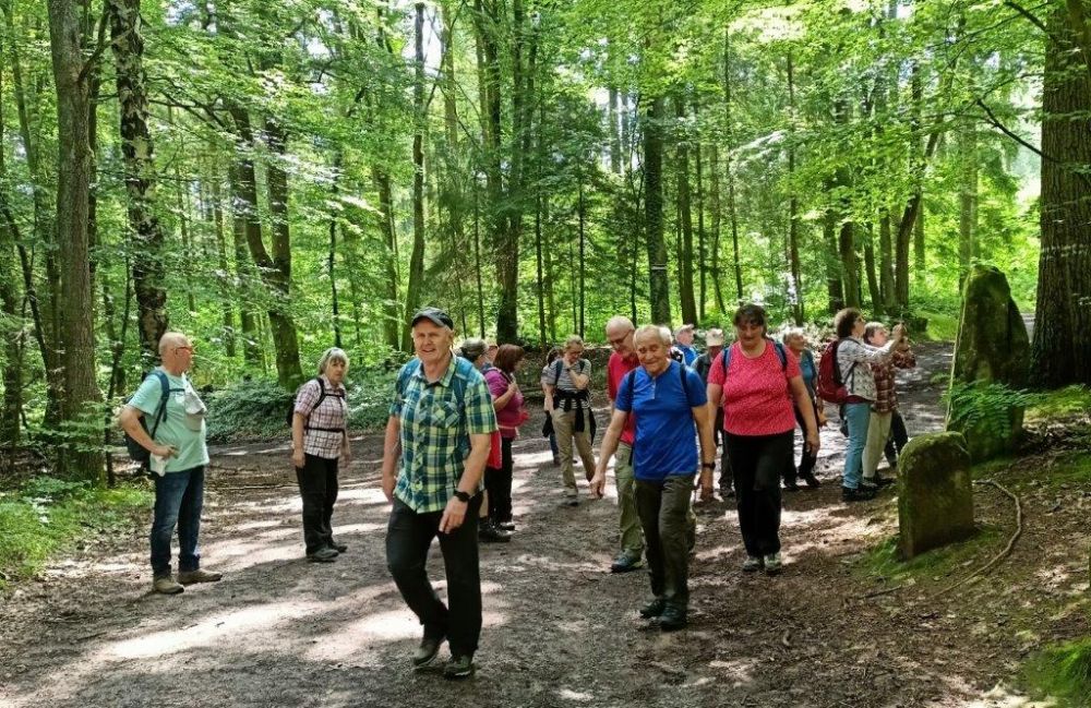 Die Lang- und Kurzwanderer starteten am Biosphärenhaus Fischbach. Von hier ging es über den Waldwiesenweg vorbei am "Schiefen Baum", der Ulrichskapelle und der "Weißen Madonna" und weiter entlang der Bachlandschaft Sauertal zum Pfälzerwoog. Weitere Stationen waren der Skulpturenweg, die Freizeitanlage Birkenfeld, der Barfußpfad mit Blick zum Lindelskopf und der Sägmühlweiher in Ludwigswinkel. Hier trennten sich Kurz- und Langwanderer. Für die Kurzwanderer ging es noch ca. 350 m zum Gasthaus „Zum Landgrafen“.