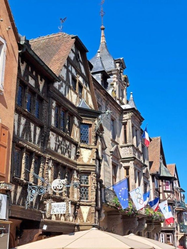Wir erkundeten zunächst Saverne, das nicht zu Unrecht als "Elsässisches Versaille" bezeichnet wird. In diesem zauberhaften Städtchen, nahe Lothringen, trägt das Sandstein-Schloss (frz. Château des Rohans) mit seiner 140 m langen Gartenfront zum einzigartigen Stadtbild Savernes bei. Das Stadtbild wird von vielen alten Fachwerkhäusern geprägt, von denen vor allem das Maison Katz mit seinen filigranen Schnitzereien an der Fassade aus dem 17. Jahrhundert zu nennen ist. Danach fuhren wir weiter nach La Petite-Pierre ins Hotel-Restaurant „Aux trois Roses“, wo uns auf der schönen Terrasse ein Grillteller mit Nachtisch serviert wurde