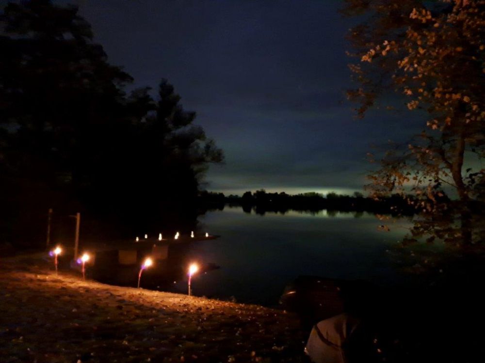 Unsere diesjährige Nachtwanderung führte uns nach Eich/Rheinhessen, wo uns eine ortsansässige Führerin erwartete. Wir wanderten dem Abend entgegen um die zwei Altrheinseen mit Beobachtungshütte und Beobachtungsturm. Unterwegs erfuhren wir Interessantes über Flora und Fauna sowie zum Naturschutzgebiet Eich-Gimbsheimer Althrein. In der Dunkelheit und bei milden Temperaturen konnten wir an einem romantisch mit Kerzenlicht geschmückten Platz am Elisabethen-See bei Lagerfeuer einen Glühwein bzw. alkoholfreien Punsch und die Atmosphäre genießen. An unserem Gesang muss allerdings noch etwas gefeilt werden. Hier wären wir am liebsten noch ein paar Stunden länger geblieben. Im Fackelschein traten wir den Rückweg an.