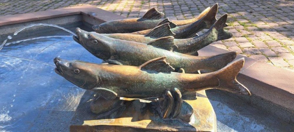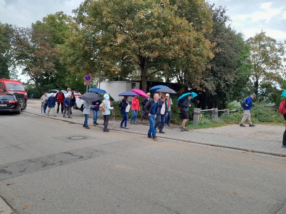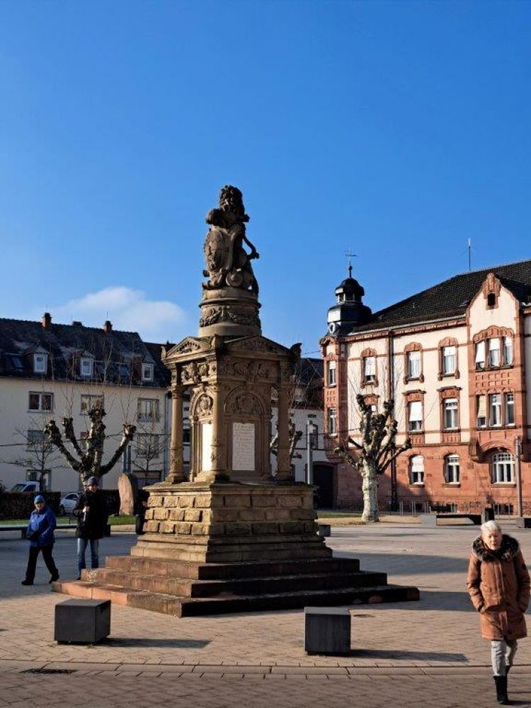 Nach der Mittagspause im schönen Biergarten starteten wir gemeinsam vom Bremerhof, vorbei am Reichswaldbrunnen, und erreichten nach ca. 3 km den Hauptbahnhof Kaiserslautern.