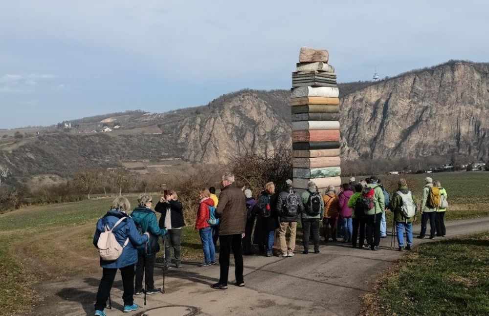Wir starteten unsere Wanderung in der Nähe des Steinskulpturenmuseums in Bad Münster. Unweit der gewaltigen Kulisse des Rotenfelsens in Bad Münster am Stein-Ebernburg hatten die Bildhauer Kubach-Wilmsen 1968 ihr Freilichtatelier errichtet. Seit 2001 verwandelten sie die verlassenen Weinberge in einen Steinskulpturenpark. Besonders interessant hier: der 50-teilige Büchterturm aus Graniten aller Kontinente. Über Beton-, Feld- u. Wiesenwege wanderten wir zu den Gradierwerken im pittoresken Salinental zwischen Bad Münster und Bad Kreuznach. Unterwegs genossen wir die Ausblicke auf Rotenfels, Ebernburg, Felsenburg Rheingrafenstein. Gegen 13:30 Uhr trafen wir nach ca. 7,5 km zur Mittagseinkehr im Brauwerk“ Salinental ein. Nach dem Essen ging es noch ca. 2 km weiter zu dem Wahrzeichen von Bad Kreuznach, den Brückenhäusern auf der Alten Nahebrücke.