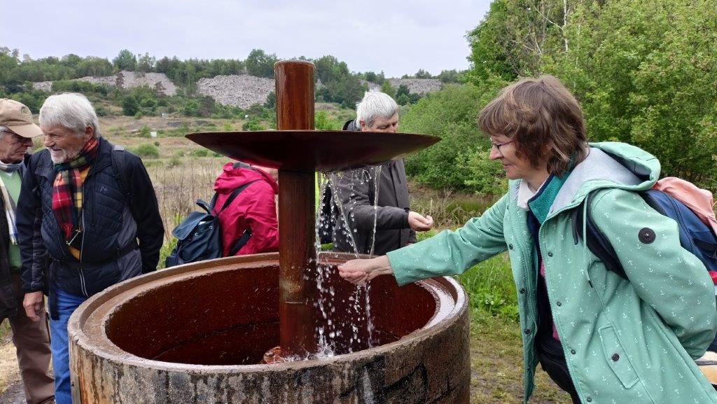 Die verschiedenen Brunnen rund um Esthal verbindet ein Brunnenwanderweg. Während der Wanderung konnten einfache Wasserstellen, Brunnen mit einfachen Trögen und große Brunnenanlagen, z.B. der 250 Jahre alte Straufelsbrunnen, besichtigt werden. Unterwegs passierten wir die große Klosteranlage St. Maria. Ausgangspunkt der Wanderung war der Dorfplatz in Esthal. Einkehr mit Rast war das Naturfreundehaus in Elmstein/harzofen.