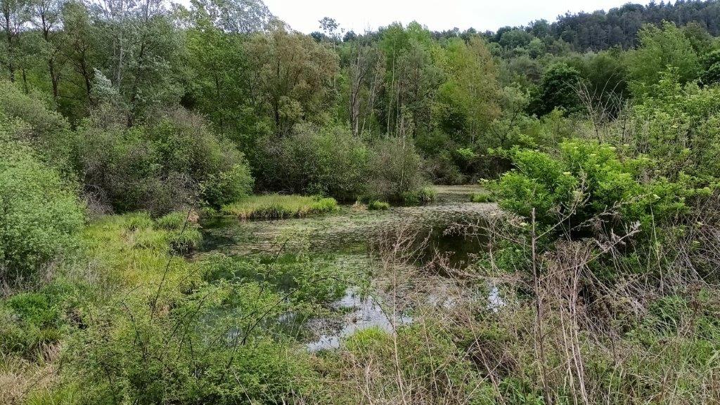 Beide Gruppen starteten die Tour zusammen am Bahnhof in Dahn. Es ging ca. 2 km den Wieslauter Bach entlang bis zum Neudahner Weiher, am Campingplatz und den Moosbach-Seen vorbei durch das Ederswoog-Tal zum Kühwoog-Tal. Nach einem 1 km langen Anstieg mit 50 Höhenmetern war schon der höchste Punkt unserer Wanderung erreicht, die Weihersebene. Durch das Weinsborntal liefen wir wieder abwärts nach Dahn. Es ging an mehreren Felsformationen vorbei, wofür das Dahner Felsenland bekannt ist.