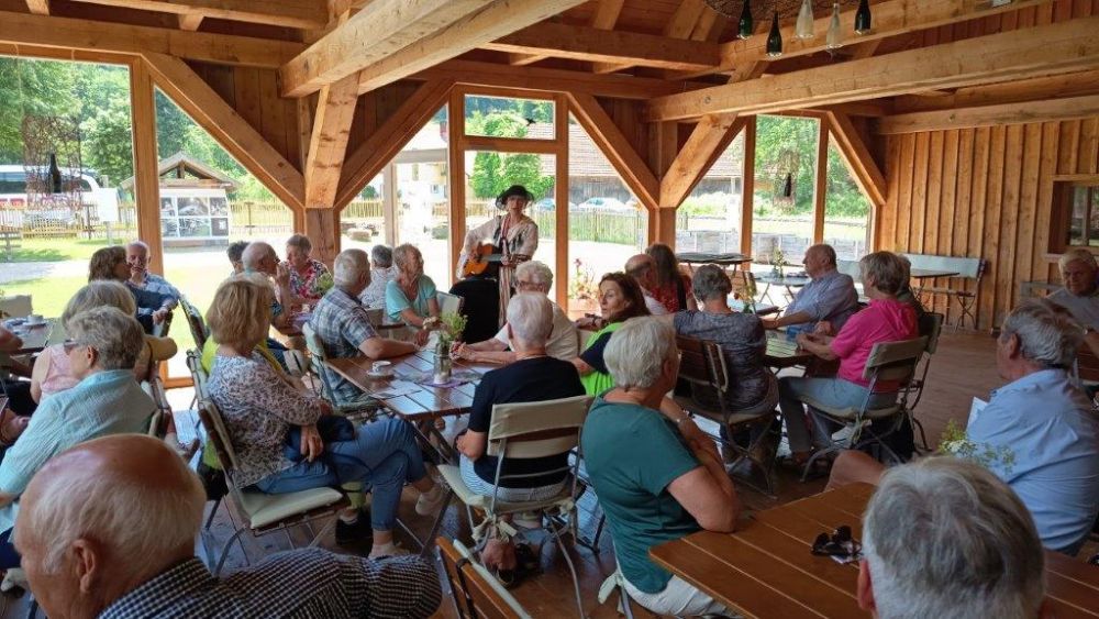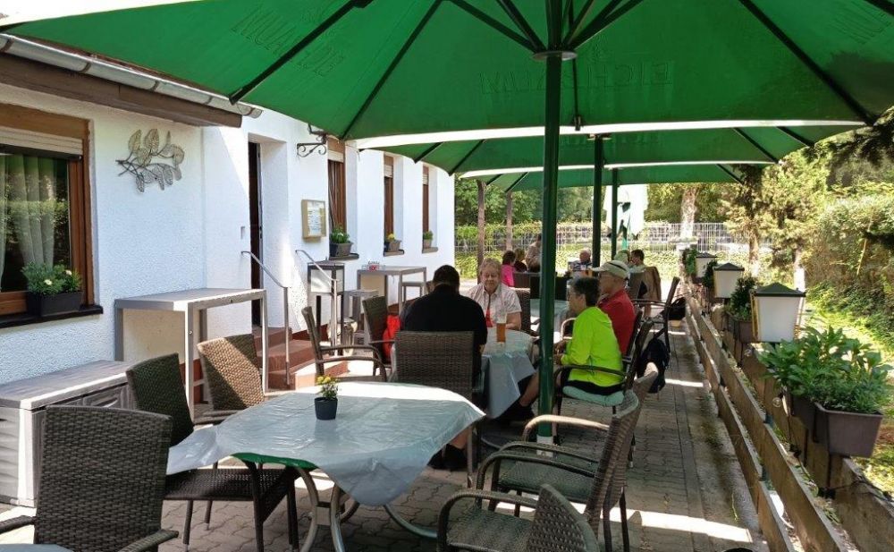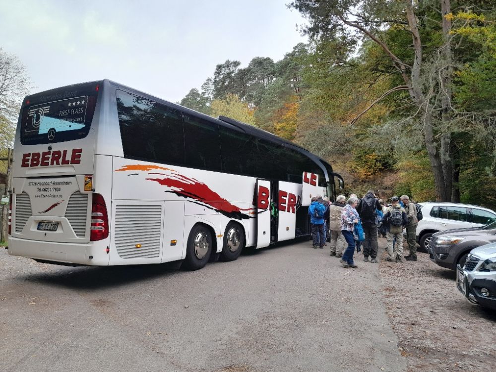 Die Kurzwanderer begaben sich zurück zum Ausgangspunkt, dem Dahner Bahnhof, und wurden mit dem Bus zur Mittagsrast im „Alten Bahnhöfl“ in Dahn-Reichenbach gebracht.