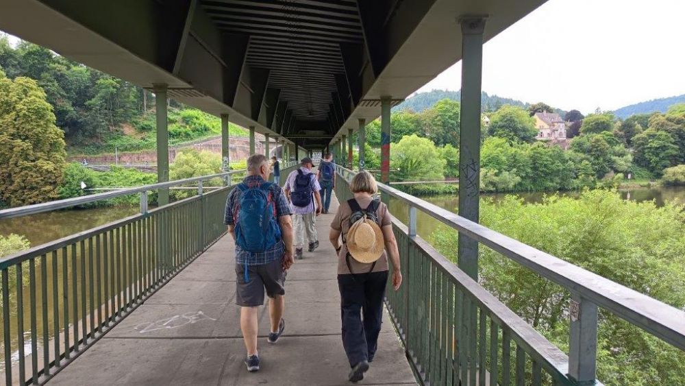 Danach ging es über die einzige Doppelstockbrücke am Neckar noch ca. 0,9 km bis zum Altstadt-Bahnhof von Neckargemünd. Es folgte ein Spaziergang von ca. 1,9 km durch die Altstadt von Neckargemünd und zurück zum Altstadt-Bahnhof. Vom Bahnhof aus hatten wir noch einen herrlichen Blick hoch nach Dilsberg.